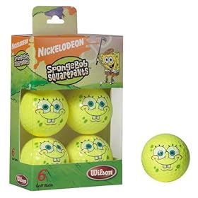 Spongebob Squarepants Golf Balls Who lives in a pineapple under the golf course lake? Hopefully not your new Spongebob Squarepants golf ball from Wilson. This 6-ball pack is perfect for getting junior golfers interested in the game of golf, not to mention being a perfect gift for older fans of Spongebob.Product Features: High powered titanium core provides maximum distance Optimum spin for maximum control 2-piece construction Ionomer cover Cut-proof durability